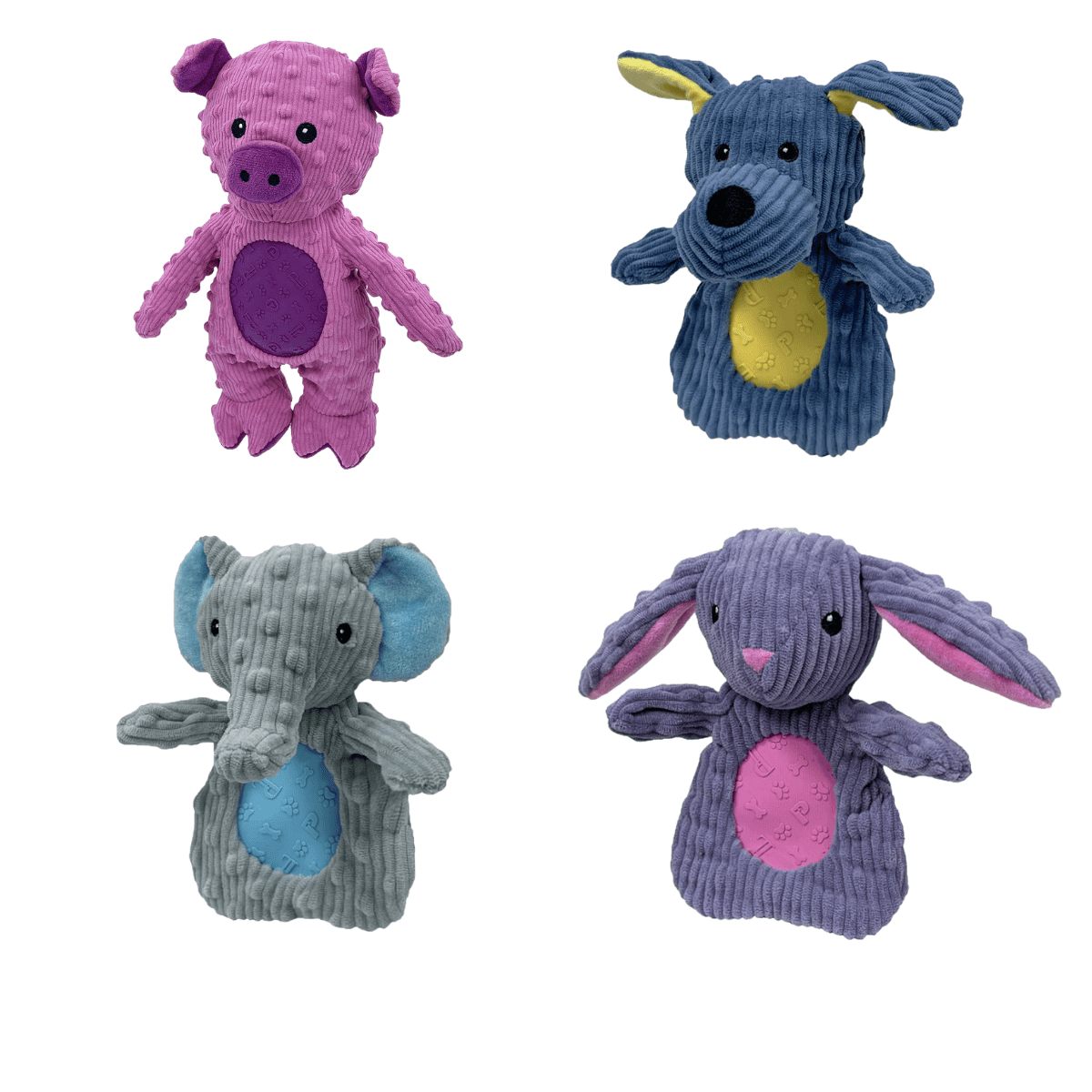 Meet your dog’s new favorite playtime companion! This 13″ whimsical plush toy is crafted from a stylish, new polka-dot corduroy that is as soft as it is durable. Designed for a truly multi-sensory experience, it features an innovative custom gel pad for a unique chewing texture, alongside crinkle paper and a large internal “grunter” for hours of auditory fun.