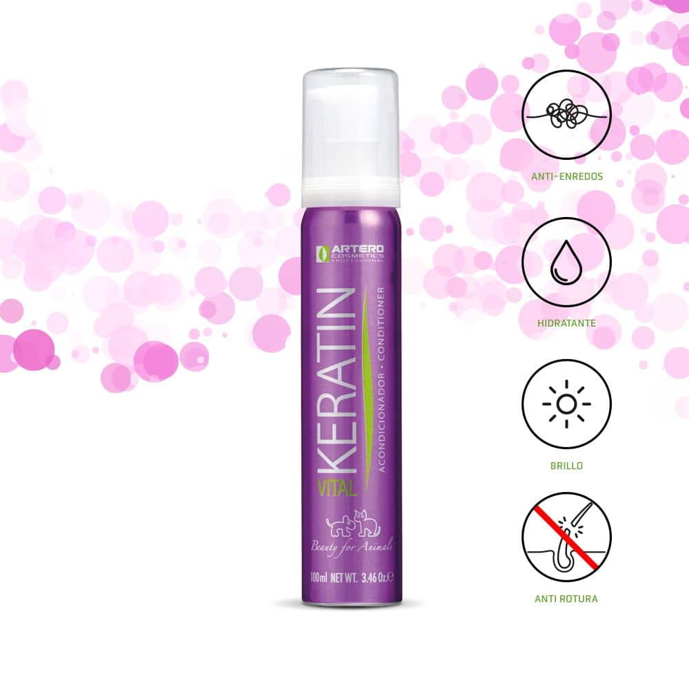 Keratin works on the skin and hair, regenerating damaged hair, providing a beautiful silky appearance to the coat, and repairing both the hair and skin’s softness. It eliminates frizz and static electricity.