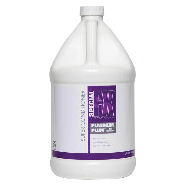 Our Special FX Platinum Plum Super Conditioner is the most advanced versatile conditioner available. This super conditioner is for the show dog or professional groomer demanding the highest performance for all coat types. Conditions, moisturizes and De-Sheds. Formulated for Canine, Feline and Equine animals.