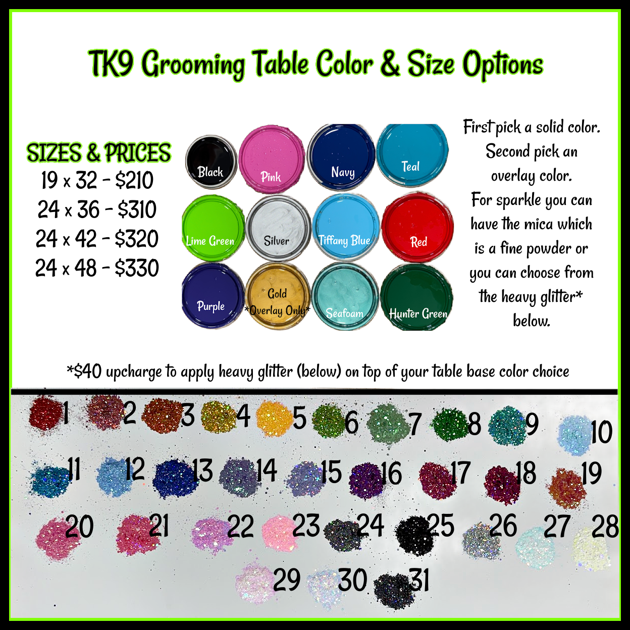 Grooming Table Color Options:
