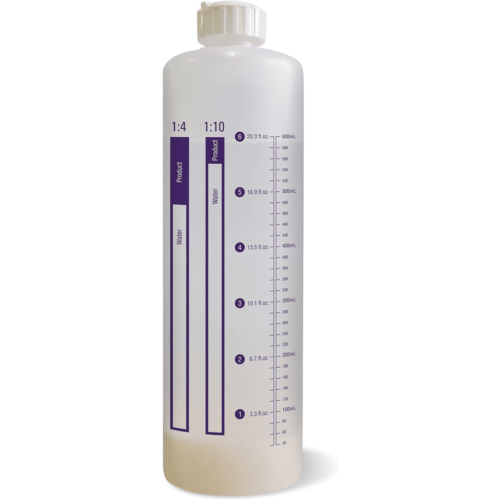 - Simply fill the dilution bottle with product to the appropriate line and add warm water.
