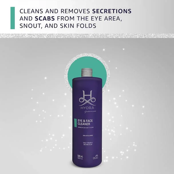 Pet Society Hydra Eye and Ear Cleaner is ideal for cleansing and sanitizing the areas around the eyes and muzzle of both cats and dogs. This mild cleaner also helps to remove secretions, scabs, and unpleasant odors from around the eyes and on the face.
