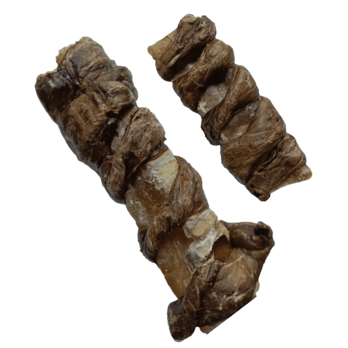 Safe and healthy alternative to rawhide chews! Jerky Wrapped Trachea chews are hollow and come from the windpipe of a bull and then wrapped in jerky. Their unique texture is soft yet durable to keep dogs engaged. They are digestible and offer unique nutritional benefits, like glucosamine and chondroitin.