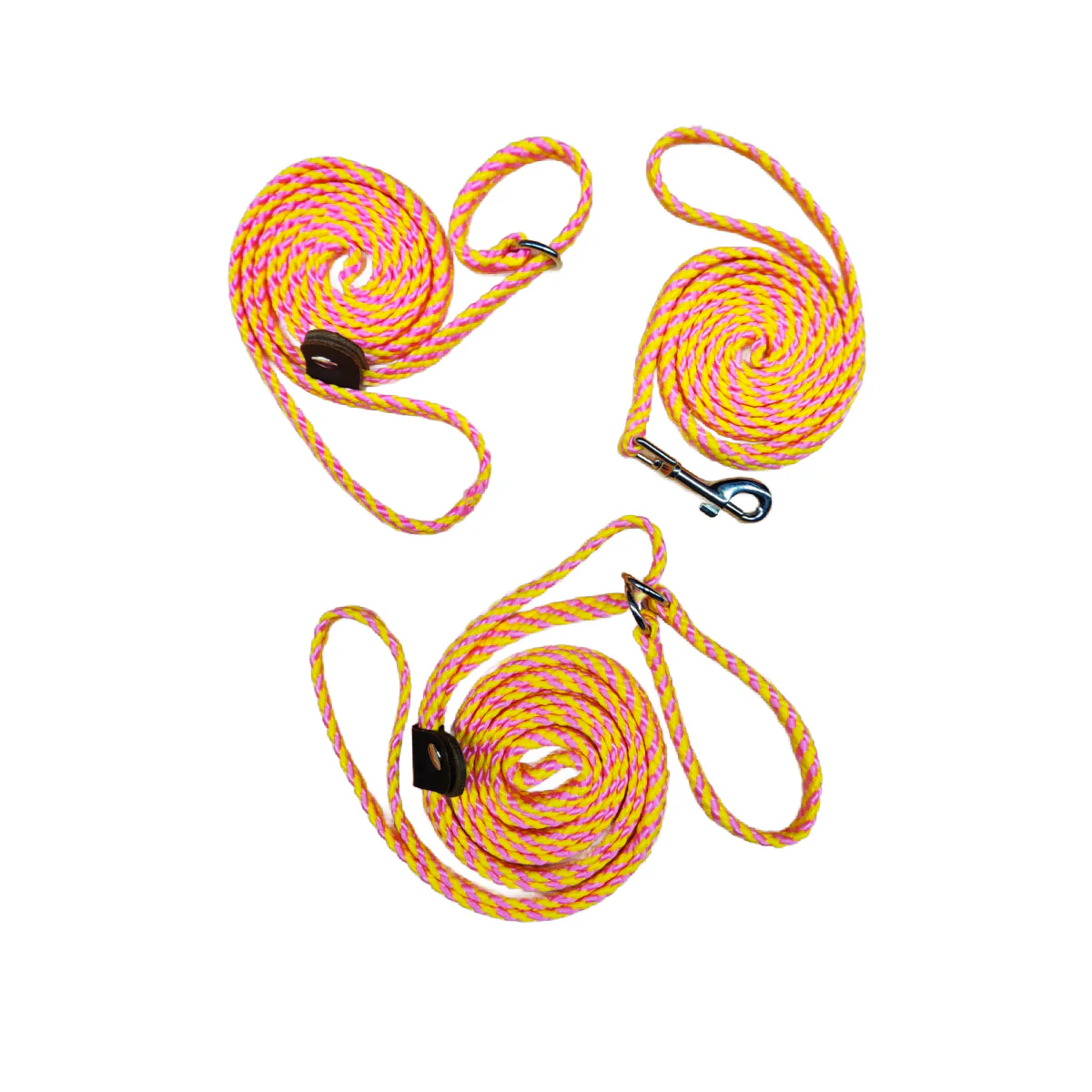 Utilizing the flat braided rope allows the lead to gently rest on a dogs neck.