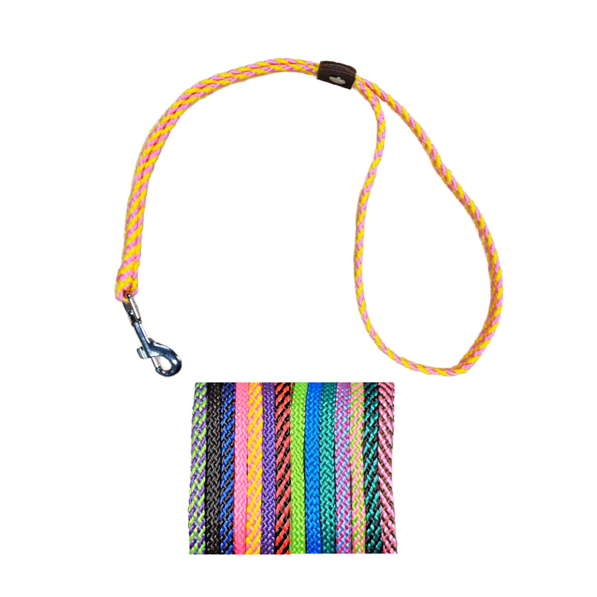 The Lone Wolf Grooming Loop is constructed from 1/4 inch flat braided rope. The adjustable genuine leather tab ensures the pets comfort and a nickel plated snap completes this quality product.