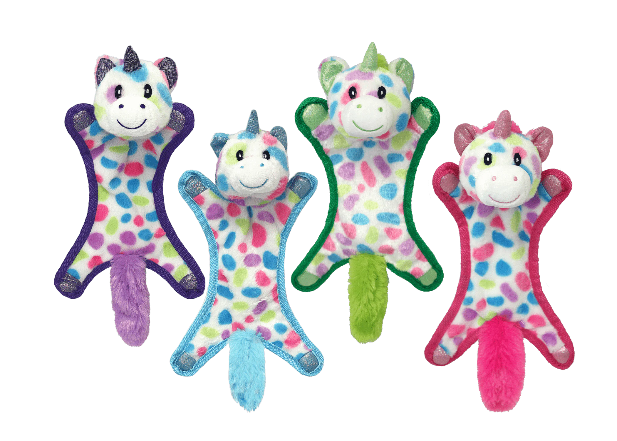 Multipet Ball-Head Unicorn Dog Toy is never ending fun for your pet. From horn to hooves, this colorful unicorn toy is designed to keep your dog engaged, active and excited during playtime. This toy has a rubber ball in the head that squeaks and crinkles with a plush body that squeaks and crinkles as well! Multipet Ball-Head Unicorn has a soft mane and tail with glittery hooves, ears and horn. Dogs love to cuddle, toss and shake this adorable unicorn toy. It encourages interactive play and is ideal for gentle chewers.