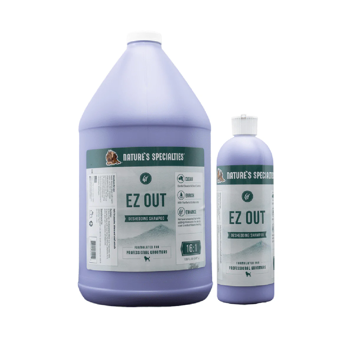 A unique non-irritating, non-drying formulation ideal to help remove undercoat with less mess and less stress making it a WIN for both the pet and the groomer. Working out the undercoat with the shampoo makes it easy to remove unwanted hair without the mess. Good for short and long hair coats. Helps promote healthy skin and coat while protecting against excess shedding. Dilutes 16:1