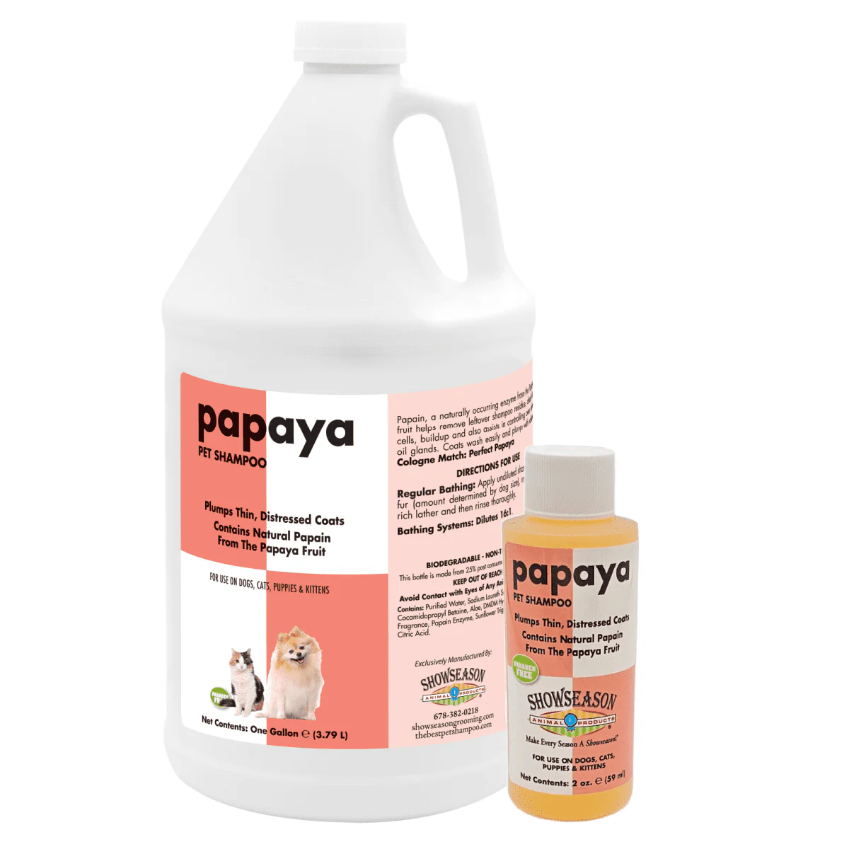 Contains natural papain from the papaya fruit that works on dead skin cells and dirt.ย Assists in controlling overactive oil glands and plumps thin coats with loads of volume.